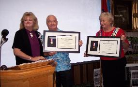 | DAR Hot Springs, Arkansas President Sheila Beatty, Danny Ricketts holds one of the awards, and niece Sylvia Lynch Matthews holds the other DAR award. |