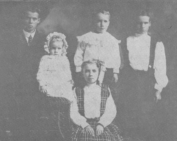 | with their three oldest children: Viola, Leonard and Lena. |