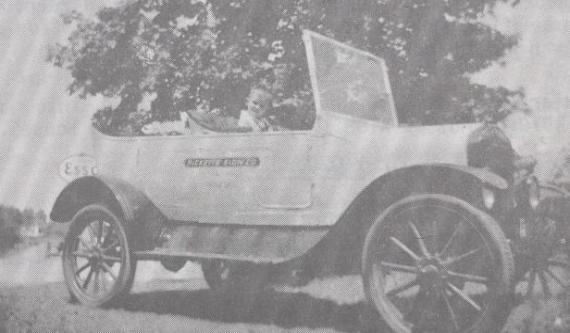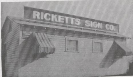 sedan but it was cut away at a level below the windhield. It was painted white with "Ricketts Sign Company" lettered on the side. With a ladder hanging over the back, Sam drove the old Ford at a rather brisk pace. In the picture above, we think one of Sam's boys is the passenger. Sam's largest job was painting the huge numerals at the ends of each runway at Danville Municipal Airport, to indicate compass headings.
