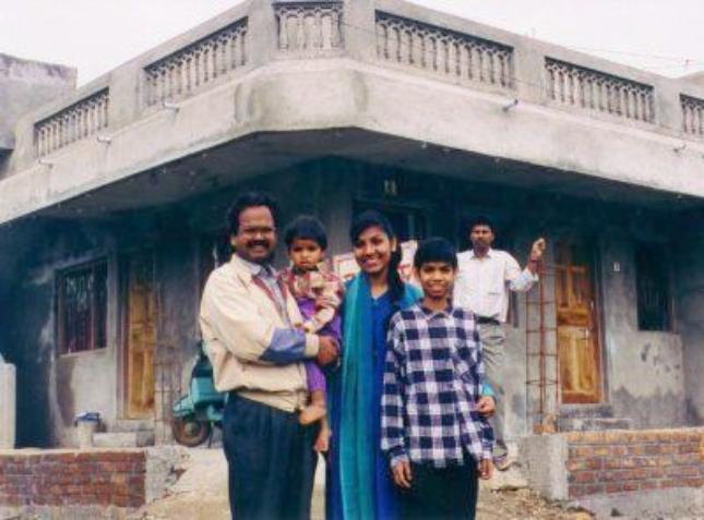 | At the New House: Prakash holds Goldie, Ruth, Sammy, their friend in back |