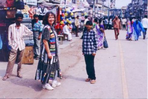 | Nancye and Sammy (boy on right) shopping in Nagpur |