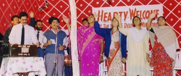| Rhema Mission Trip to India 1998 The Welcome Meeting at Peace of Life Church |