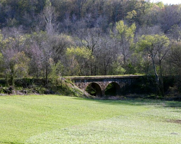 Construction of the Richmond and Danville Railroad reached Barksdale Station in September of 1855. The 140.5-mile railroad was completed to the depot on Craghead Street in Danville in May of 1856. From Barksdale Station to the Danville Depot is only 13 miles. Before the railroad, the bateaux route through Milton, North Carolina was almost 24 miles. A freight and passenger depot was constructed at Barksdale a few hundred yards east of the double arched trestle across Double Creek. The trestle is a work of art, with very large cut stones forming the graceful arches above the fast-flowing creek below. It is interesting to note that when the trestle was flanged out to make it higher and wider, some of the old metal tract can be seen jutting out of the concrete above the original top of the bridge. On towards Danville, crossing Sandy Creek there is a trestle with five arches.