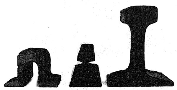 At right is a modern 132-pound/yard rail which is just over seven inches tall. At right are rails used during the Civil War, which are less than four inches tall. At left is a U-Rail and center another early rail. We believe that the U-Rail may have been inserted in the iron tie plate about. During the Civil War, the Richmond and Danville line had 61 miles of 52-pound U-Rail. This is almost half of the 140.5 miles of main track.