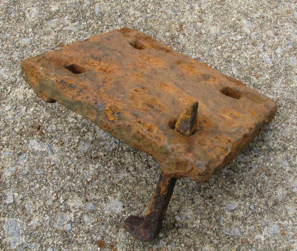 This is the early tie plate with a spike from the cabin. My grreat grandfather William Pruett (father of Nathaniel Pruett who was my grandmother Annie Pruett Jones’ father) mentioned his “shops” in his 1876 will. William Puett moved from Pittsylvania to Halifax in the 1850s, so we believe that he may have had a blacksmith shop and forge to produce iron products for the railroad.