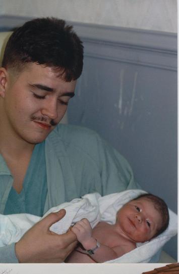 | Bobby with his son Joey, who was just born. He is our first grandson and we were crazy grandparents for quite awhile. |