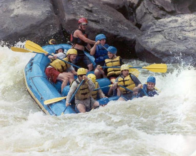 | White water rafting in West Virginia - Bobby Ricketts (bottom right) and boys from his Boy Scout troop |