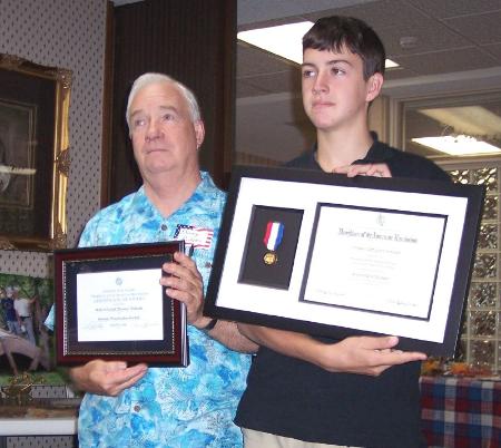 | Danny Ricketts and oldest grandson Joey Ricketts show their history awards from the D.A.R. (Daughters of the American Revolution) |