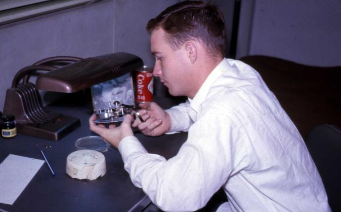 | Danny Ricketts repairs a clock - Air Force basic training 1961 |